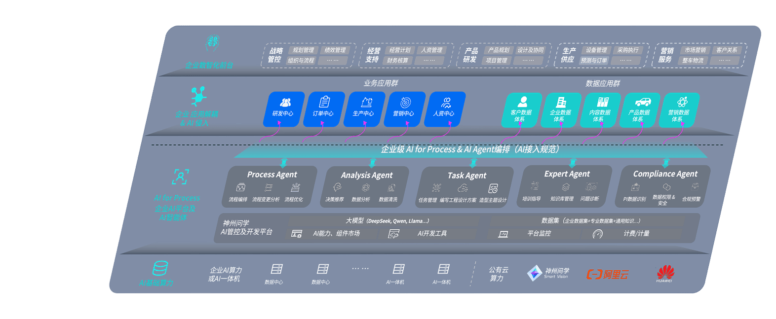 端到端的一站式AI工作空间深度融合了从企业战略规划到日常经营的全流程业务板块,,定向解决车企内部领域多、、部门多、、、、链条长、、场景碎片化等难题,,,,支持车企快速构建以AI为核心的生产力写作体系,,,,实现任务执行与AI能力的无缝集成与交互